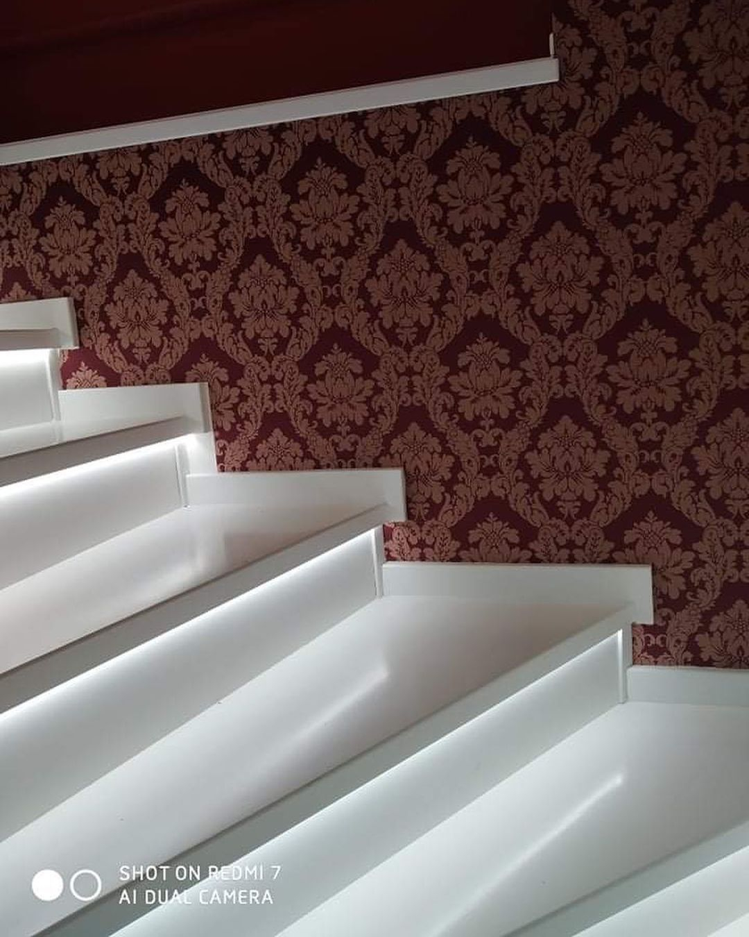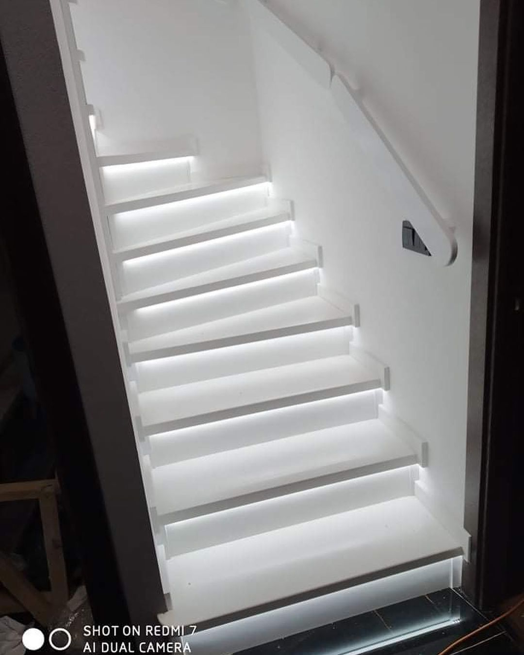 - Подступенки и обшивка: Массив сосны-60 000 р. Краска + лак.