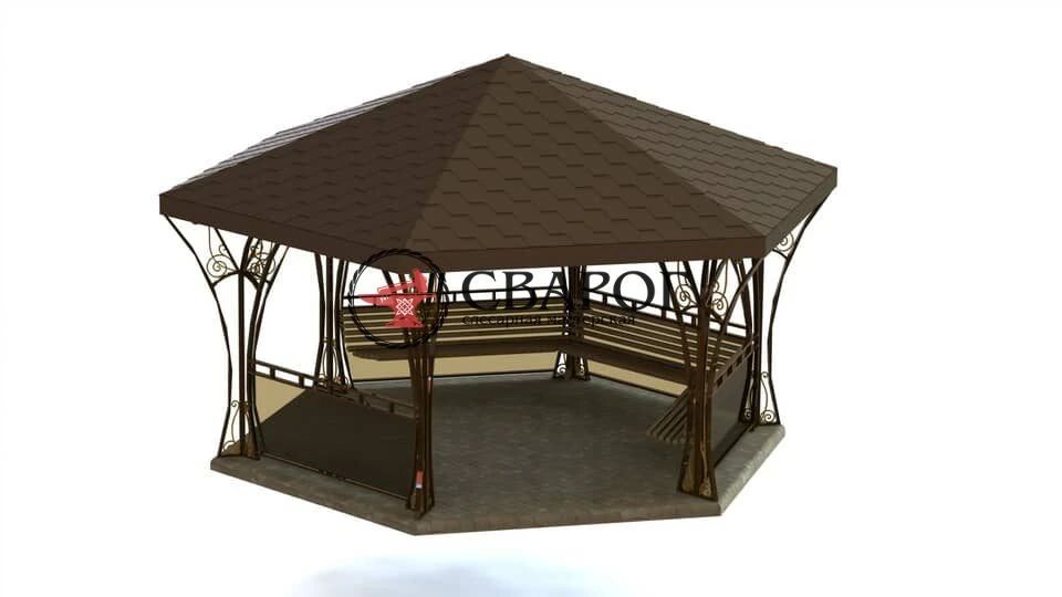 Беседка шестиугольная с ковкой и лавками 3 на 3 метра