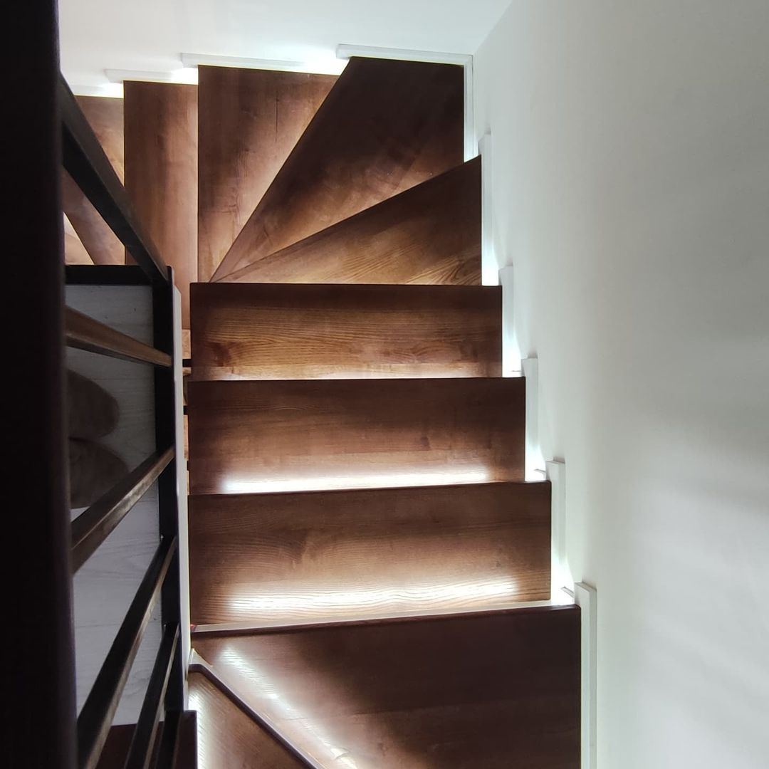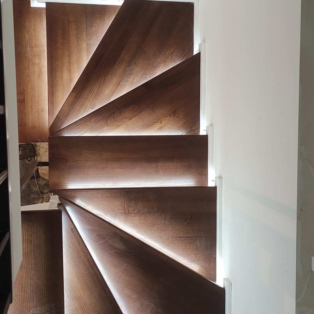 - Забежной называют ступень, края которой не параллельны, а наружная сторона по длине превышает внутреннюю.
