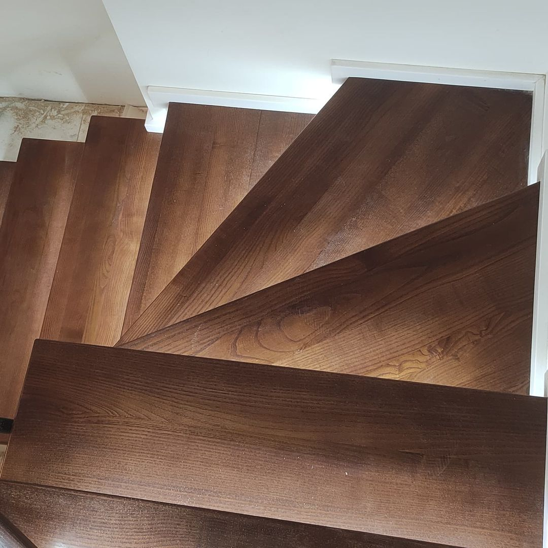 - Подступенки и обшивка: Массив сосны.-60 000 р. Краска + лак.