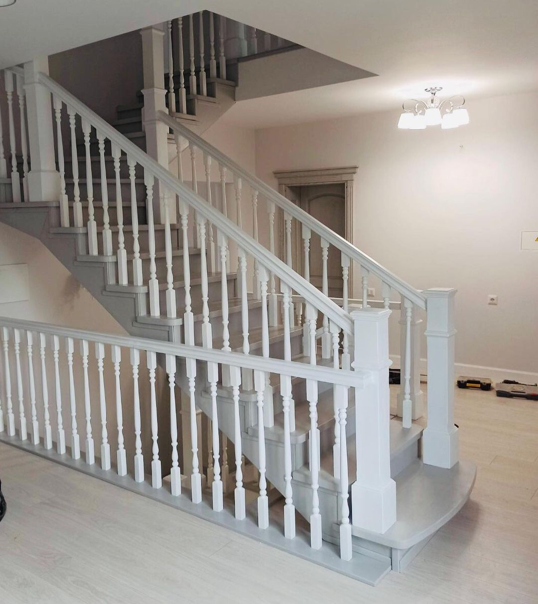 - Данный тип лестниц подразделяется на два вида: с забежными степенями и с площадкой.