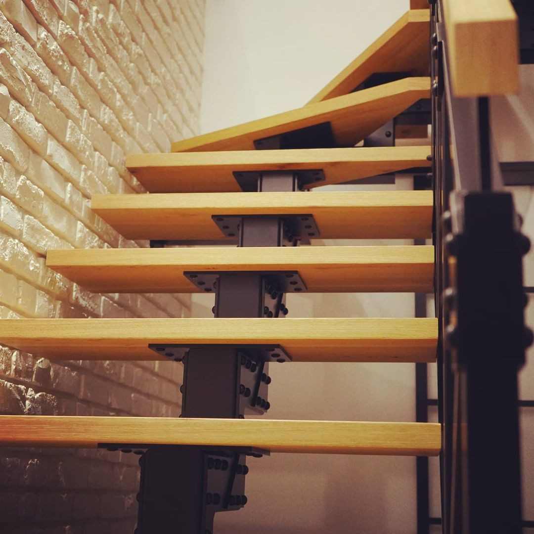 Ступени могут быть изготовлены из лиственницы, ясеня, дуба.