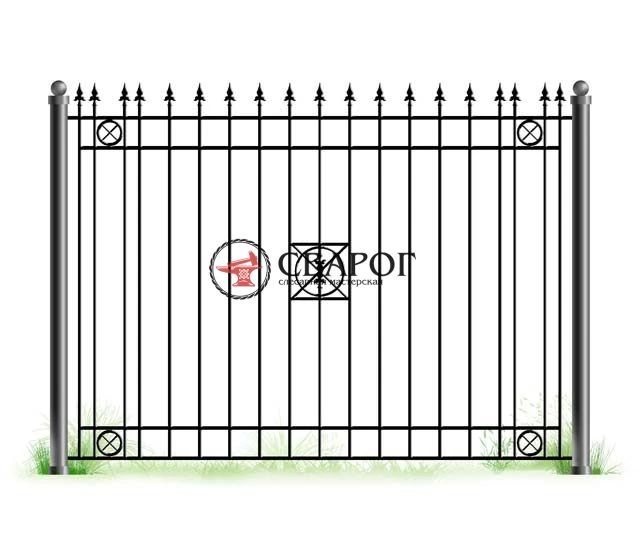 Кованный забор с кругами и различными пиками А3140