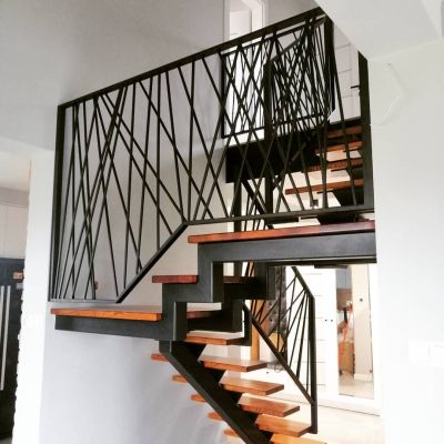 - К лестничным маршам металлические стойки крепятся просто и эффективно – используются незаметные шурупы или специальные болтовые соединения.