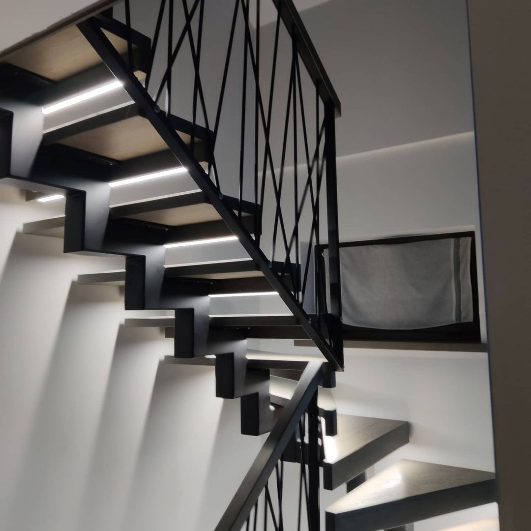 - Лестница с промежуточной площадкой и разворотом на 180 градусов, прекрасно подходит как для открытой, так и для закрытой лестничной клетки.