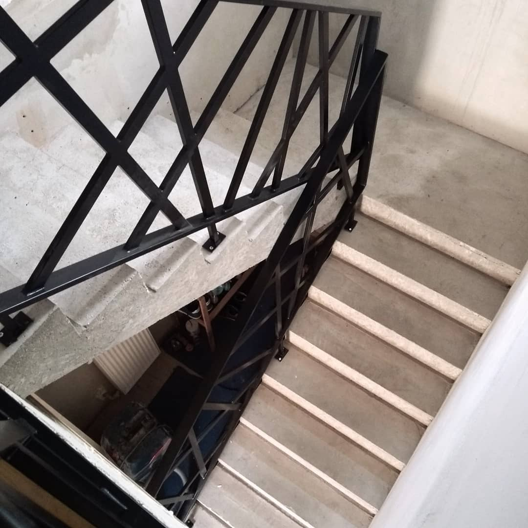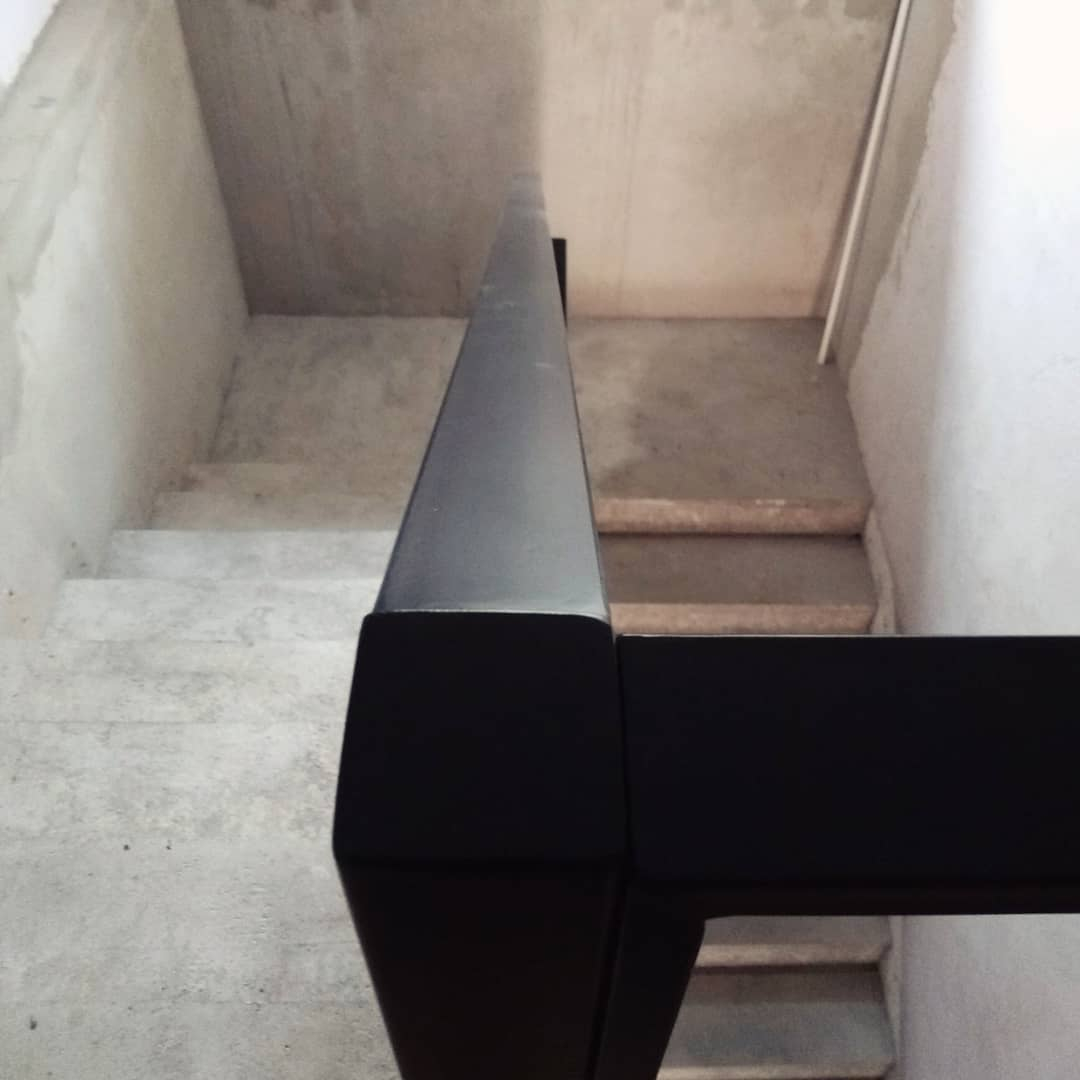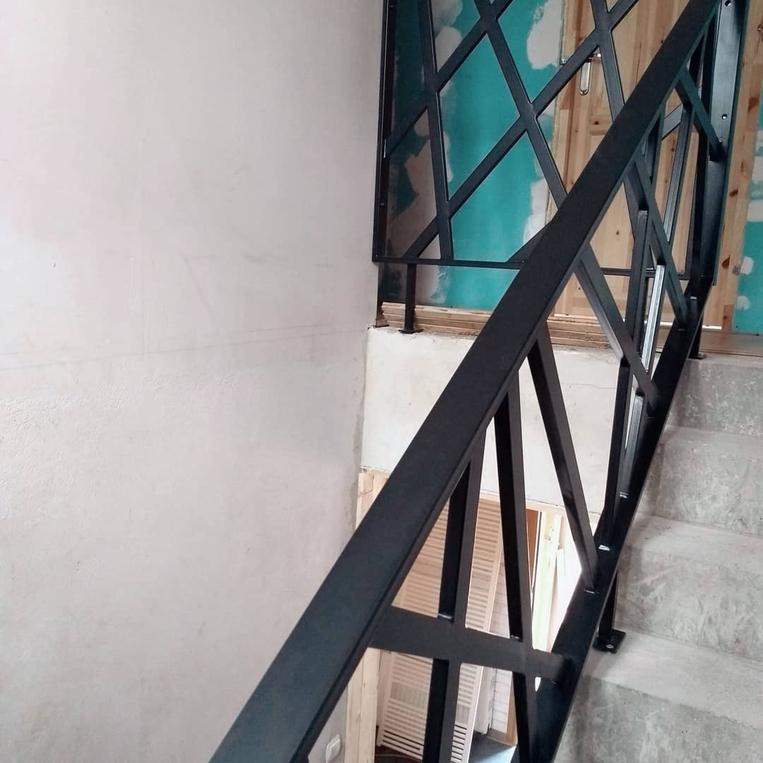 - Перила: из черного металла — 55 000 р. Порошковый окрас.