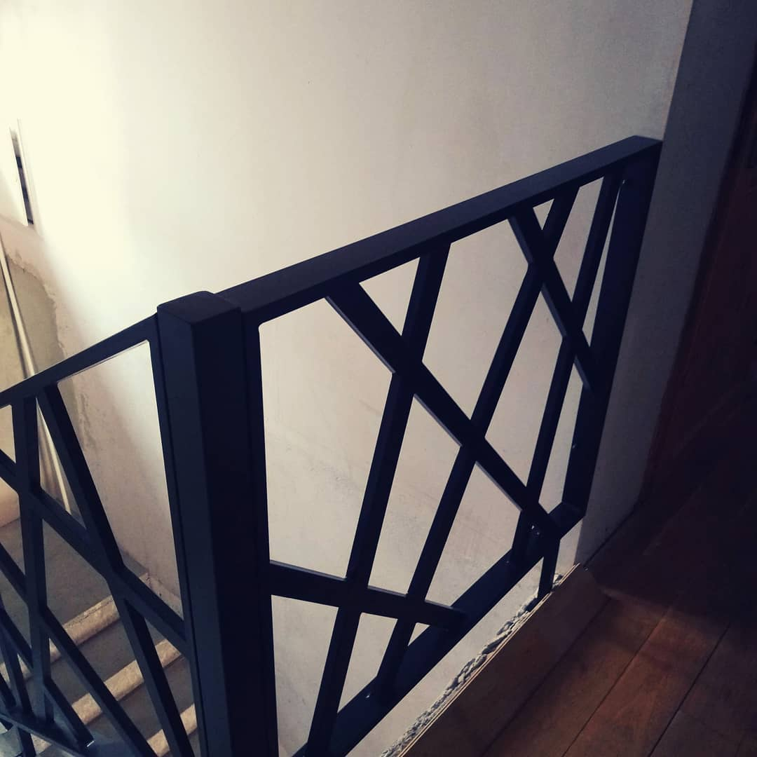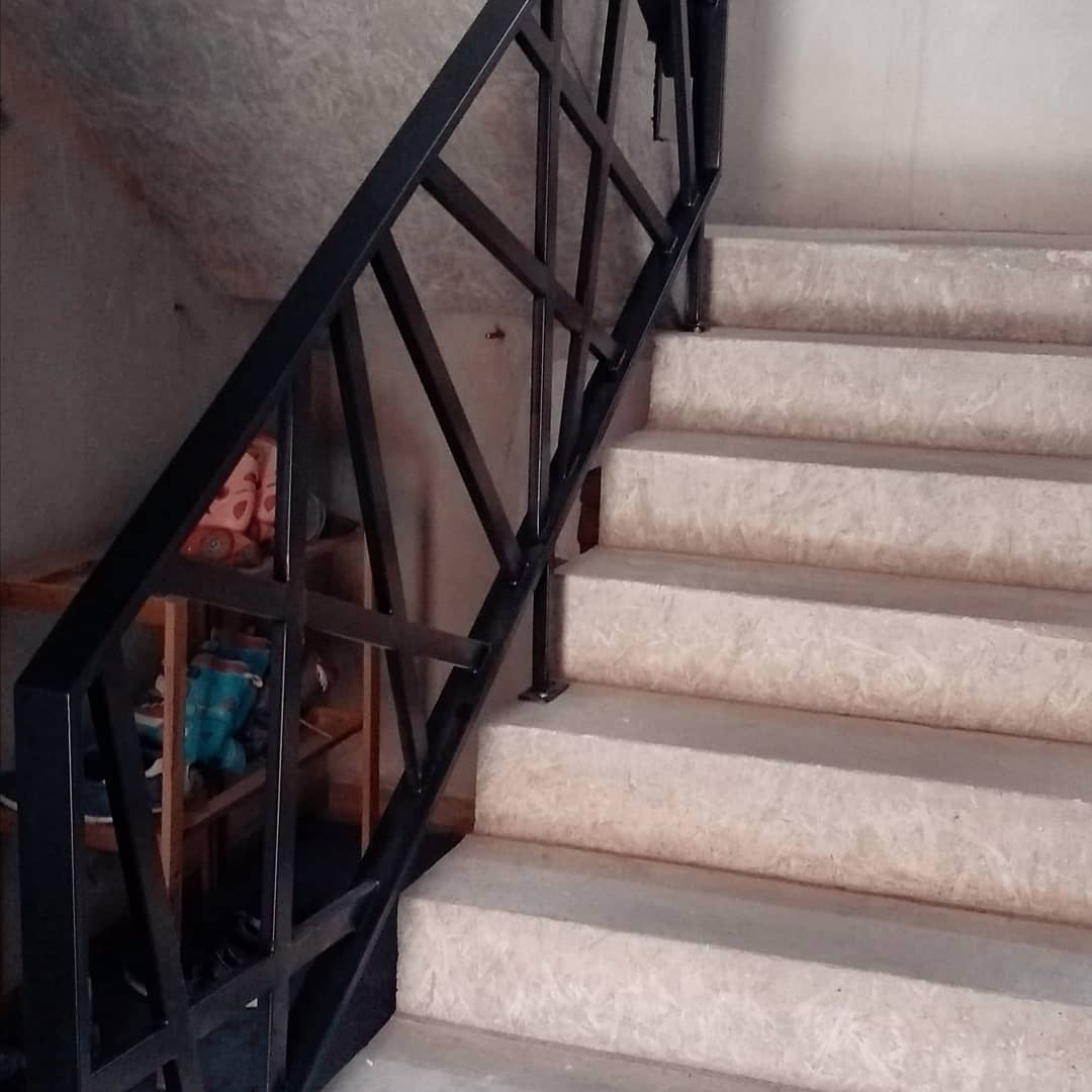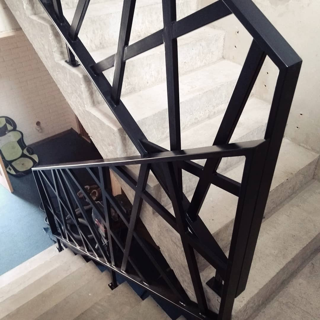 - Перила: из черного металла — 55 000 р. Порошковый окрас.