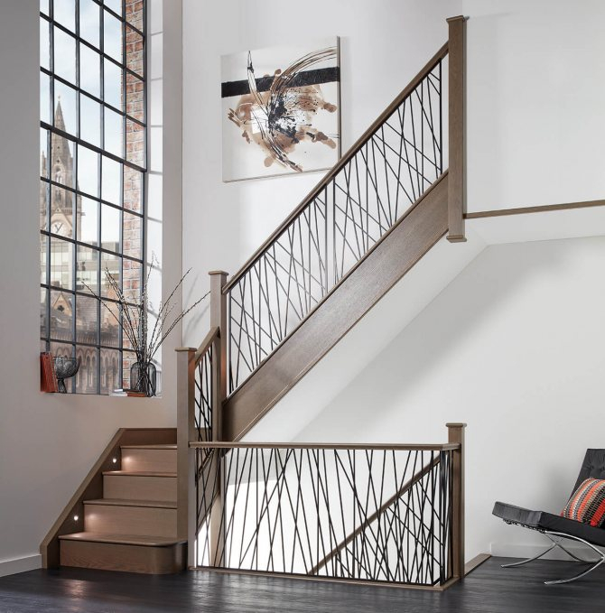 - Использование стальных тросов в качестве заполнения ограждений позволяет, главным образом, сберечь объем пространства лестничной клетки, а также средства хозяев.