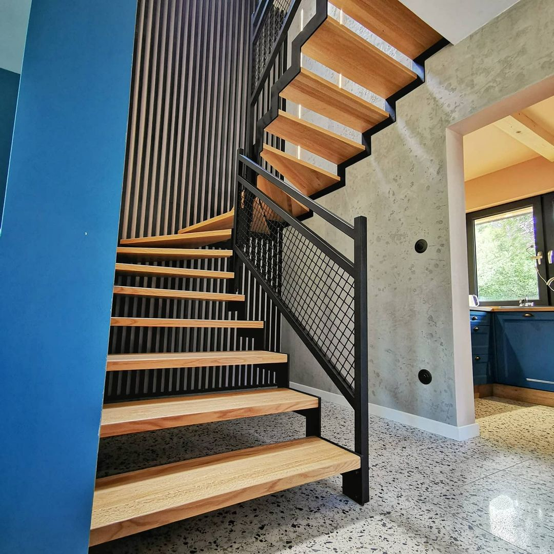 - К лестничным маршам металлические стойки крепятся просто и эффективно – используются незаметные шурупы или специальные болтовые соединения.