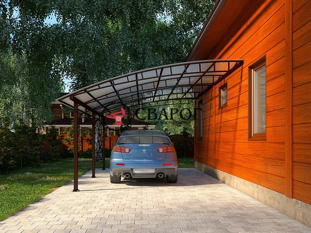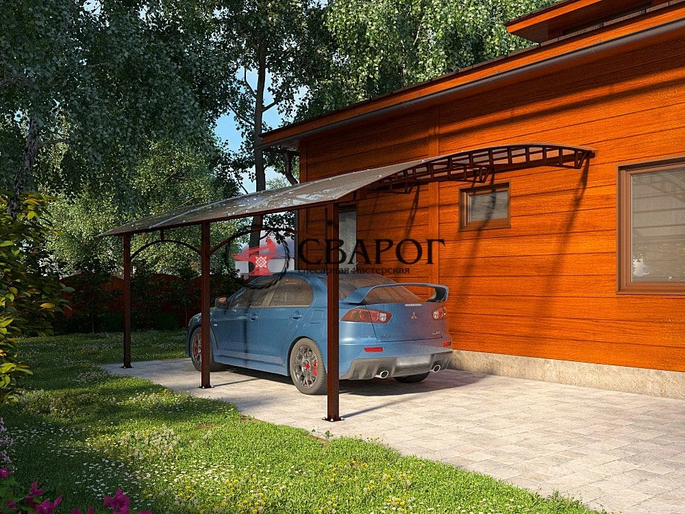 Размеры козырька 1х1,5х3 метра. Используются профильные трубы, карбонат, кованые элементы.