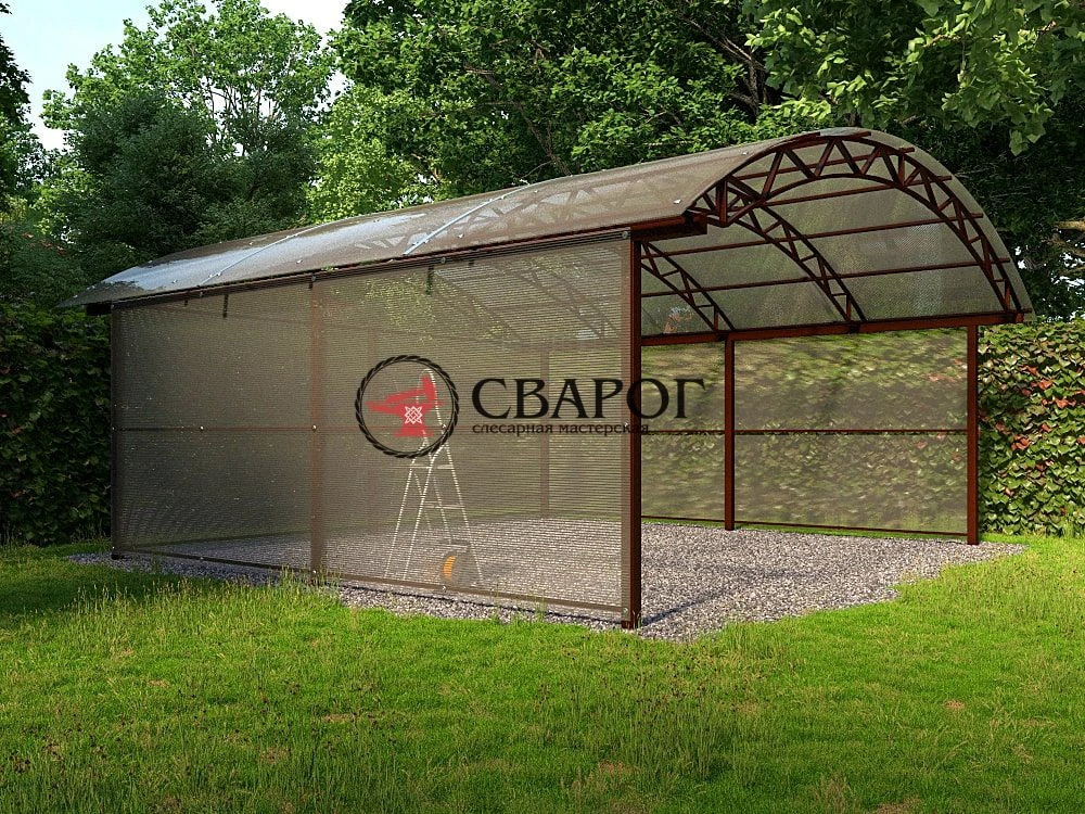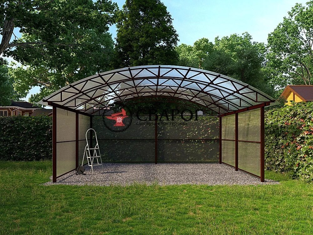 Габаритные размеры 2,5 на 3 метра, высота 3 метра. Цена указана за козырек. Перила — 5 500 руб./пог.метр