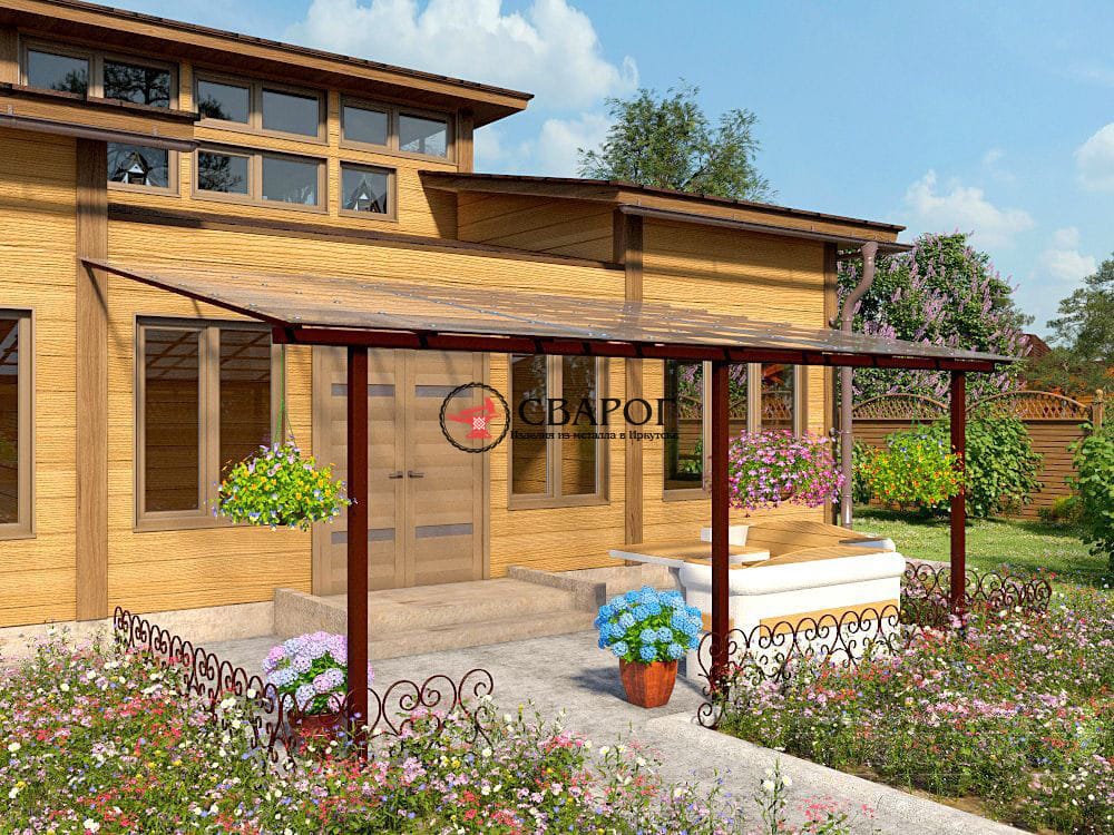 Для изготовления используются материалы - Стойки, профильные трубы, карбонат, кованые элементы.