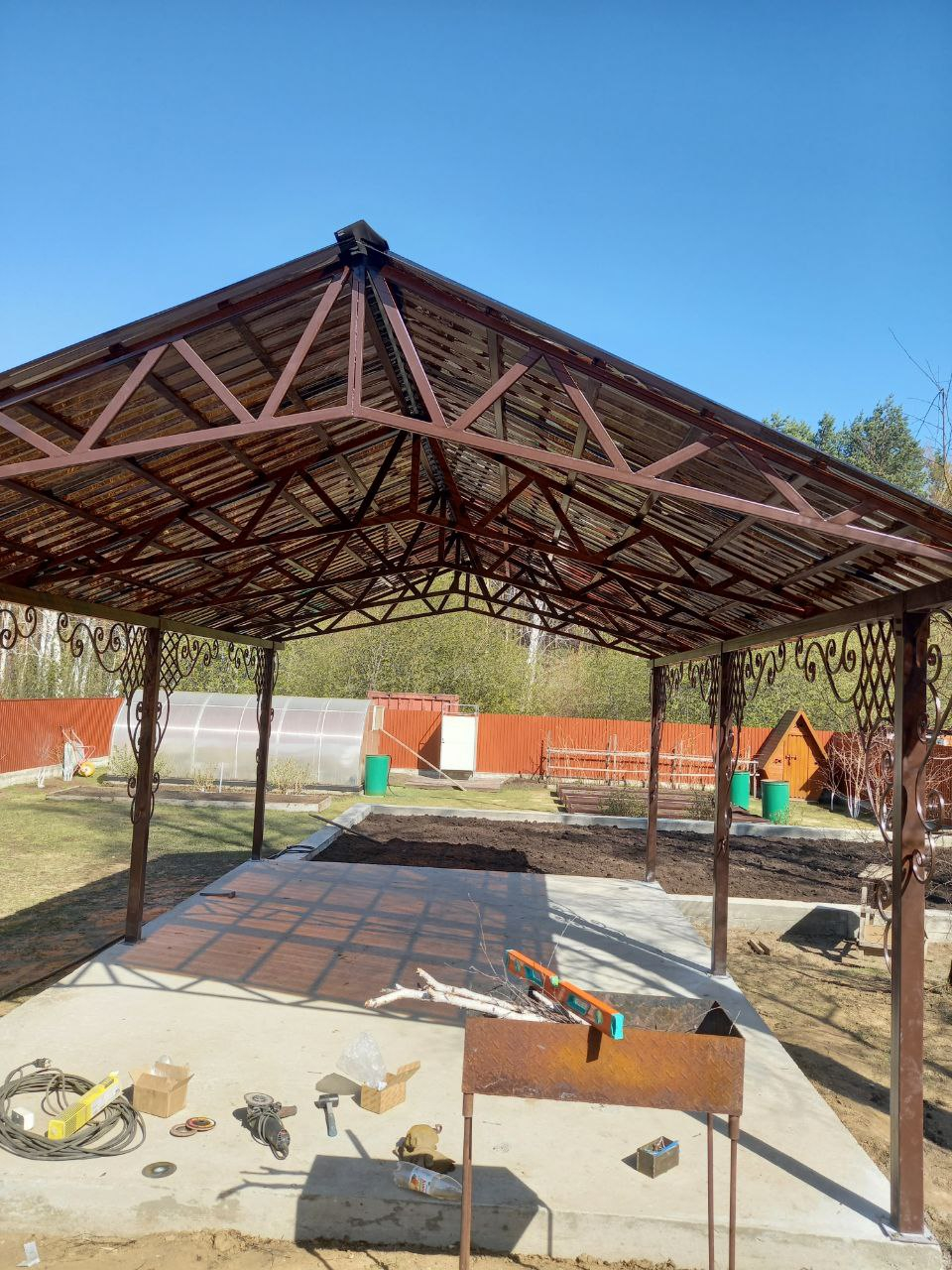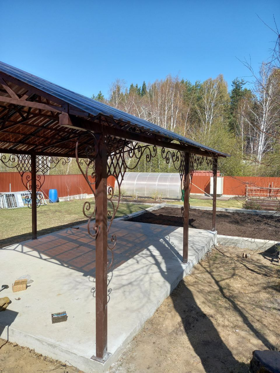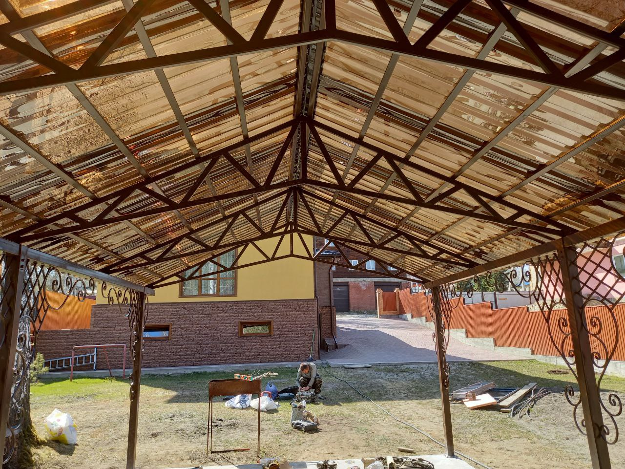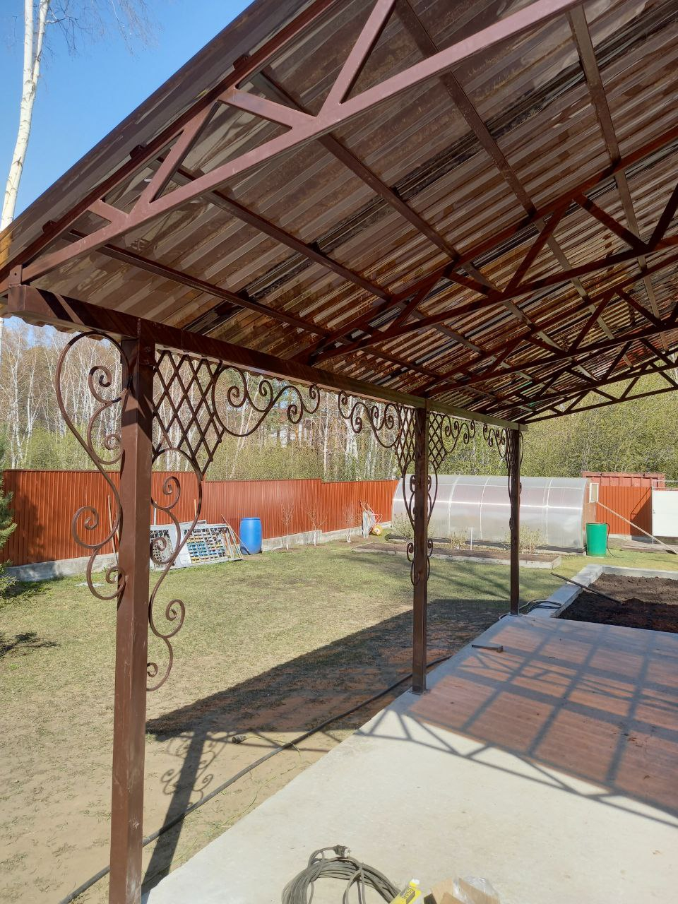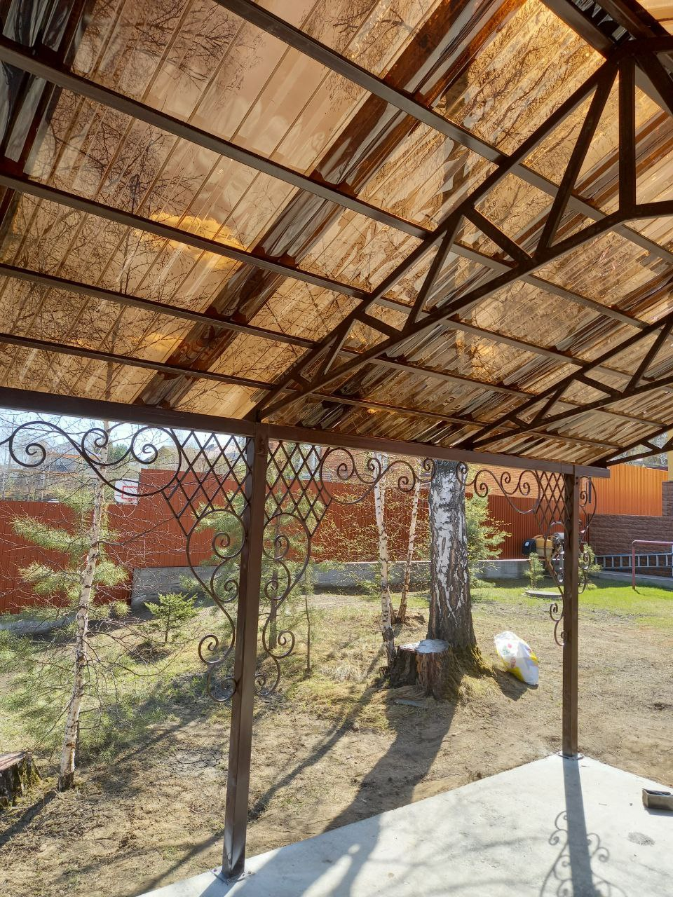 Навес с пластиковым шифером и элементами ковки