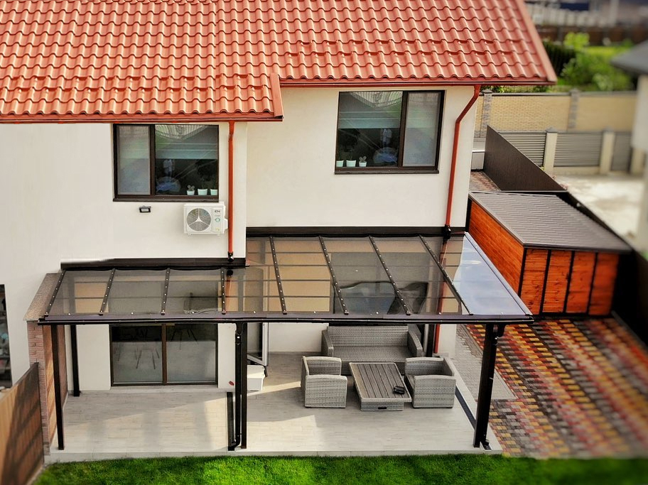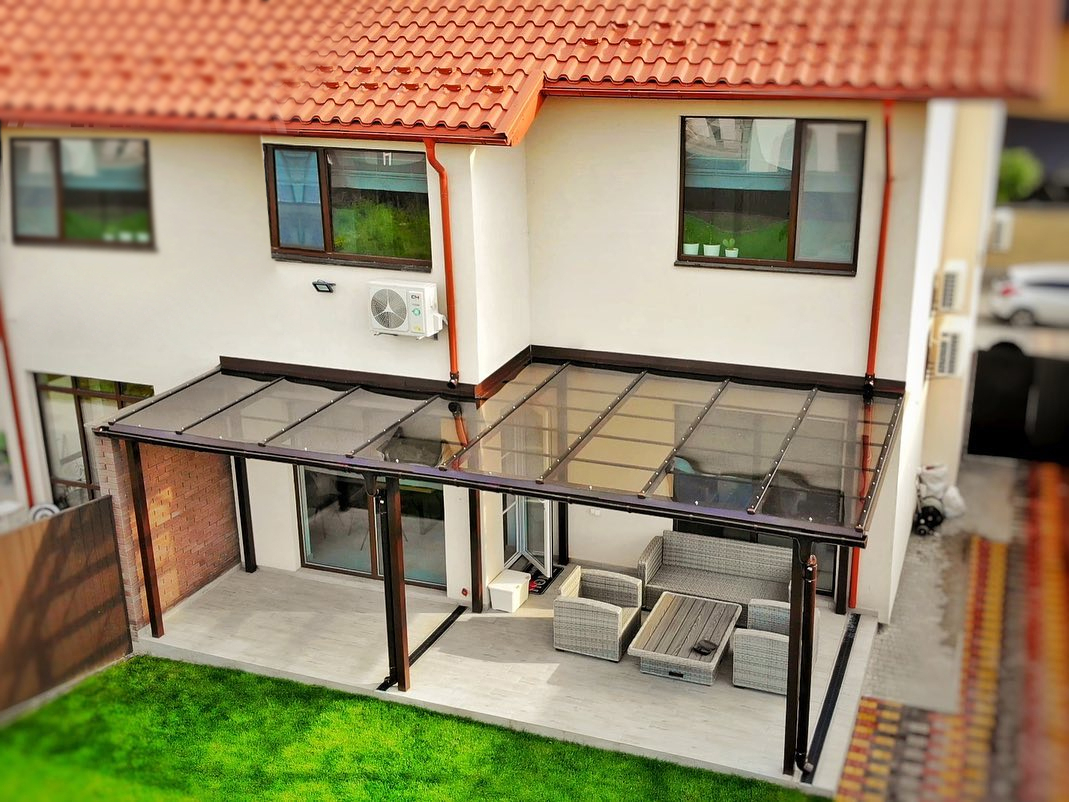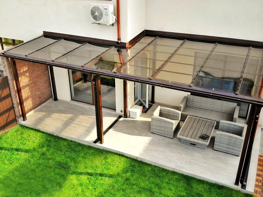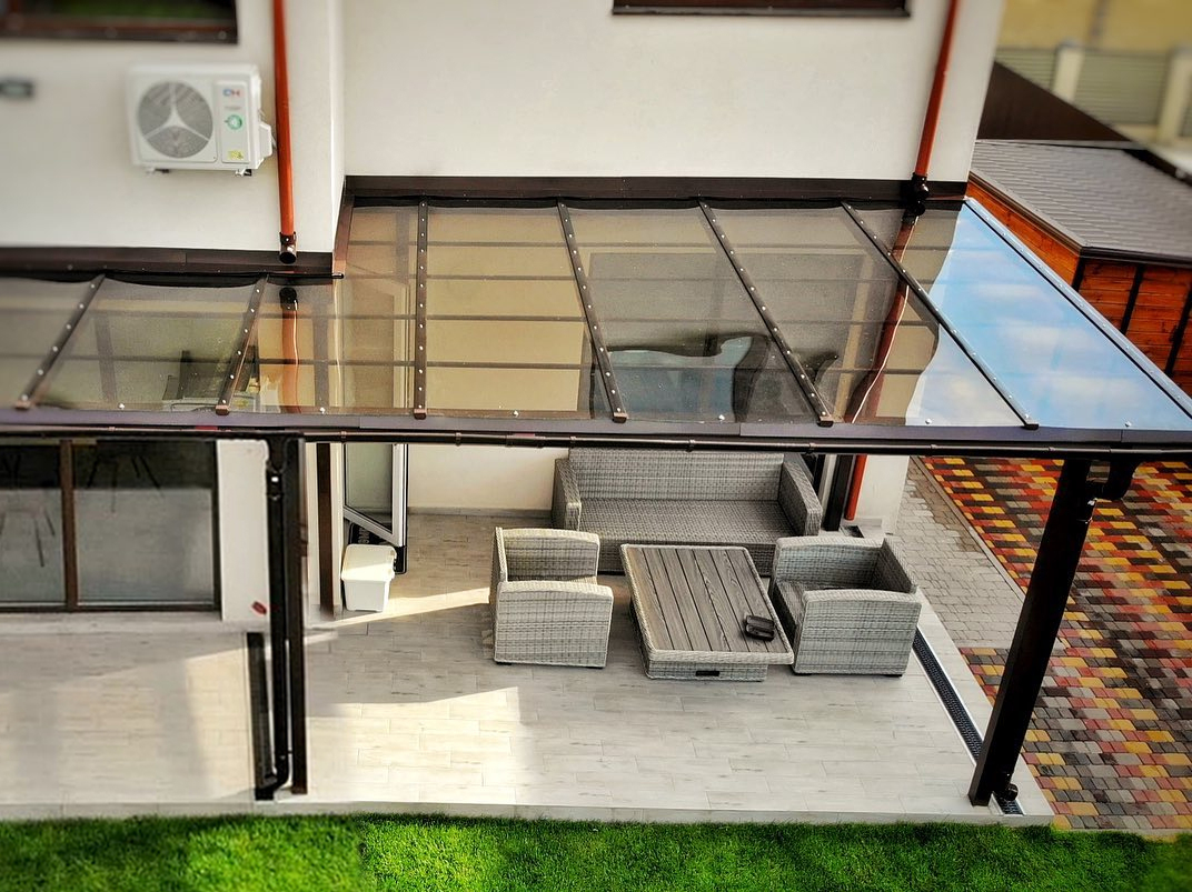 Материалы для конструкции – профильная труба, карбонат, кованые элементы, саморезы и покраска.