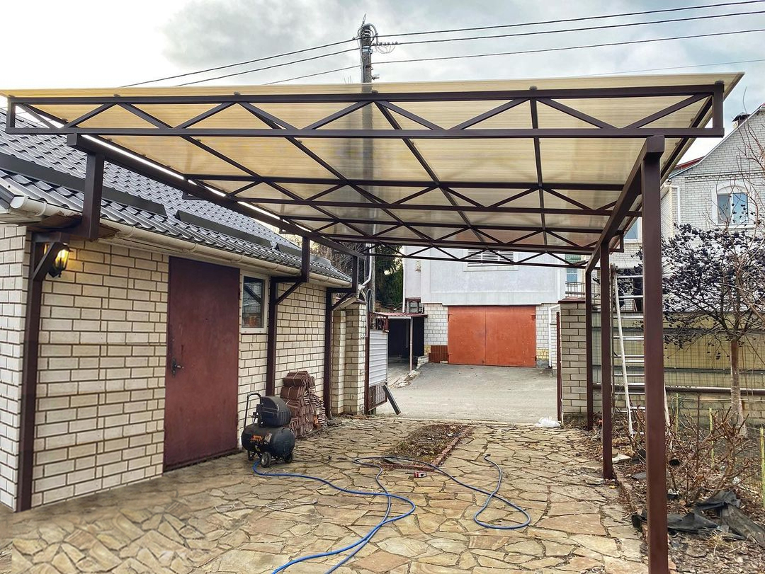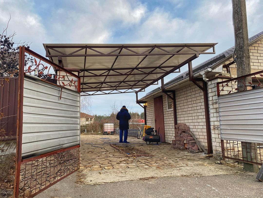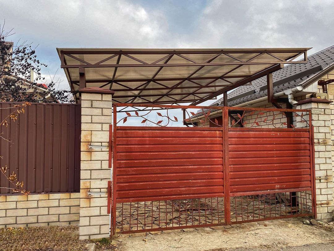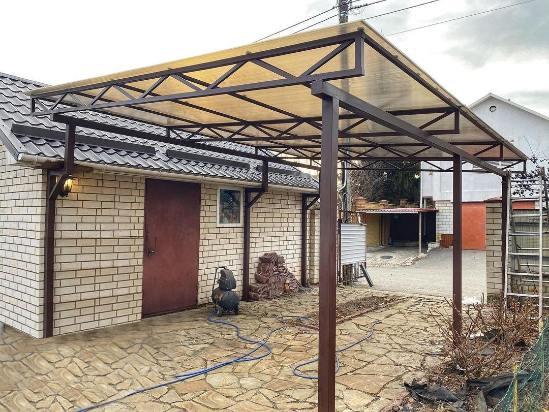 Материалы для конструкции – профильная труба, карбонат, кованые элементы, саморезы и покраска.