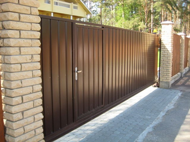 Откатные ворота секционные из профнастила