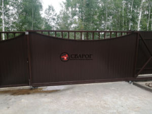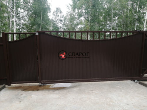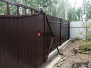Откатные ворота из профлиста с простым узором, ширина 4 метра