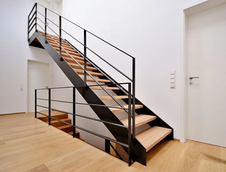 - К лестничным маршам металлические стойки крепятся просто и эффективно – используются незаметные шурупы или специальные болтовые соединения.