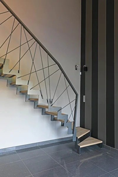 - К лестничным маршам металлические стойки крепятся просто и эффективно – используются незаметные шурупы или специальные болтовые соединения.