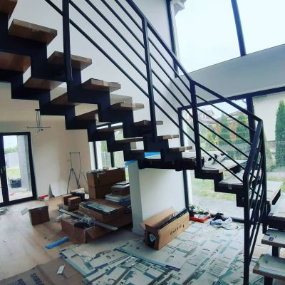 - Данный тип монтажа перил подразумевает крепление опорных стоек и балясин к торцу лестничного марша, таким образом, увеличивается полезная ширина пролета.