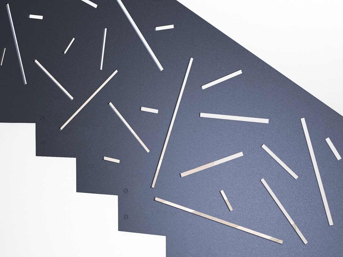 - Заполнение пространства между стойками ограждения вырезанным лазером металлическим листовым орнаментом способно придать помещению уникальный внешний вид.