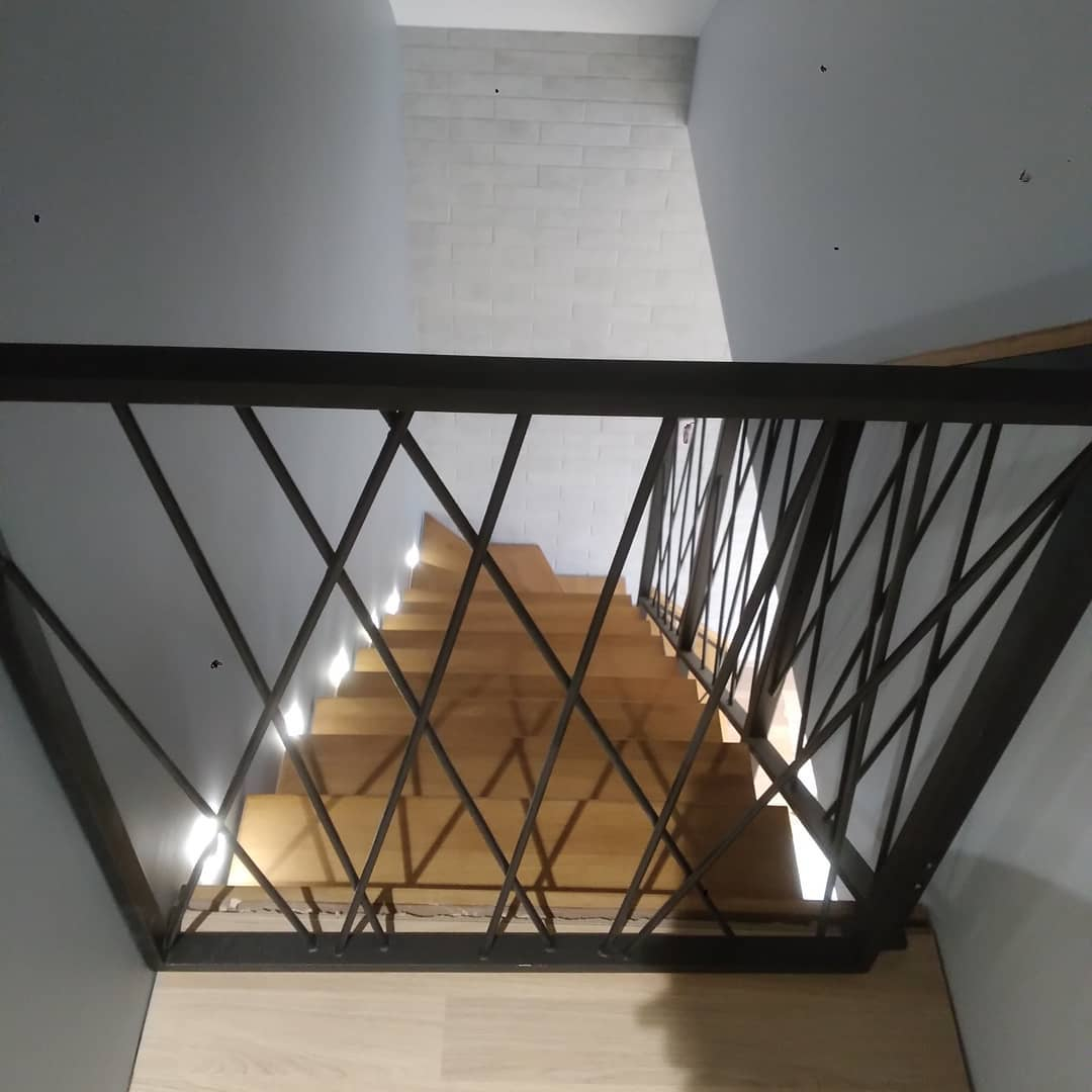 - Перила: из черного металла — 55 000 р. Порошковый окрас.
