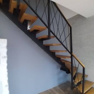 - Двухмаршевую лестницу с промежуточной площадкой и поворотом под прямым углом обычно располагают вдоль стен открытой лестничной клетки – для экономии пространства.