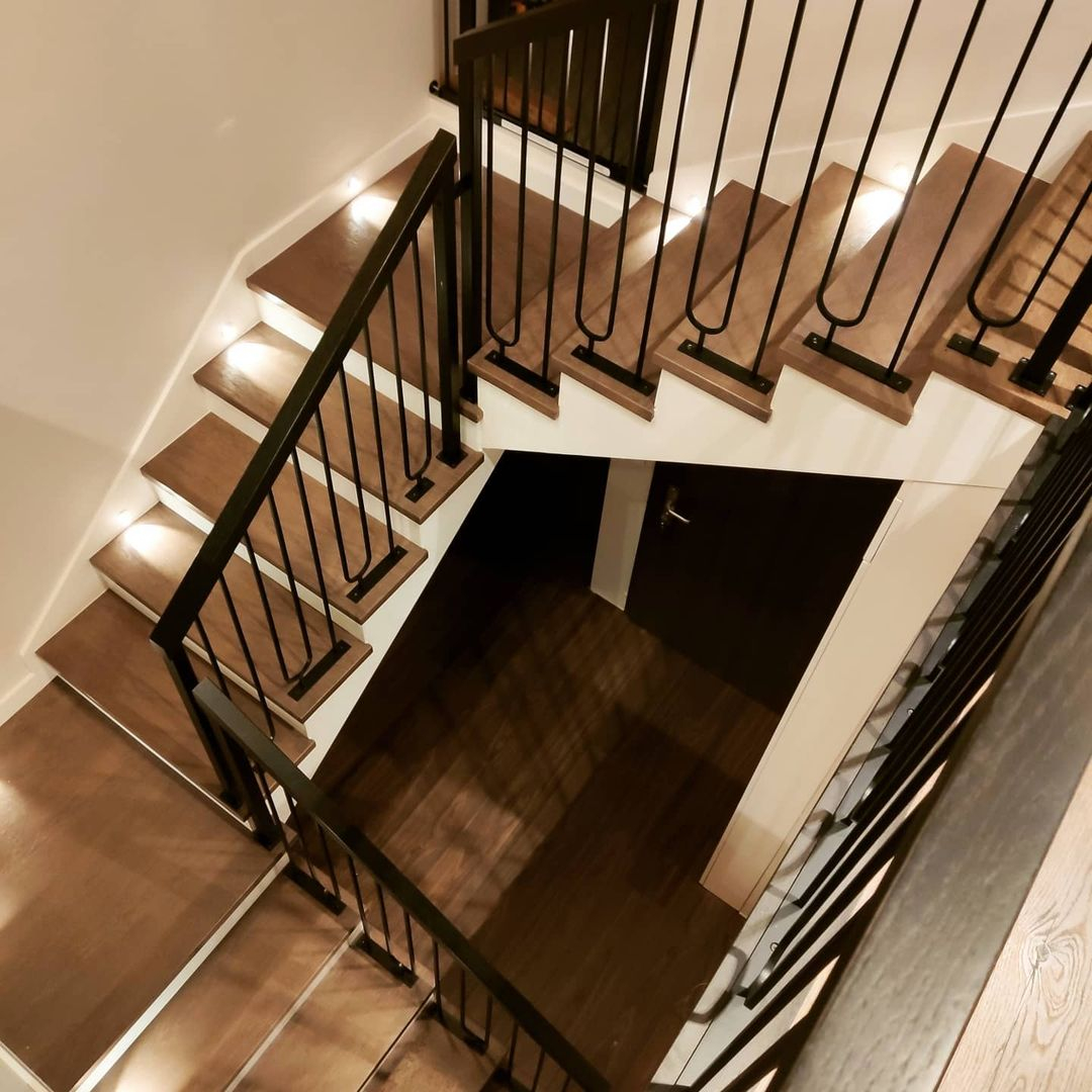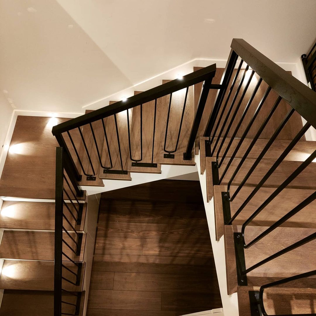 - Данный тип лестниц подразделяется на два вида: с забежными степенями и с площадкой.