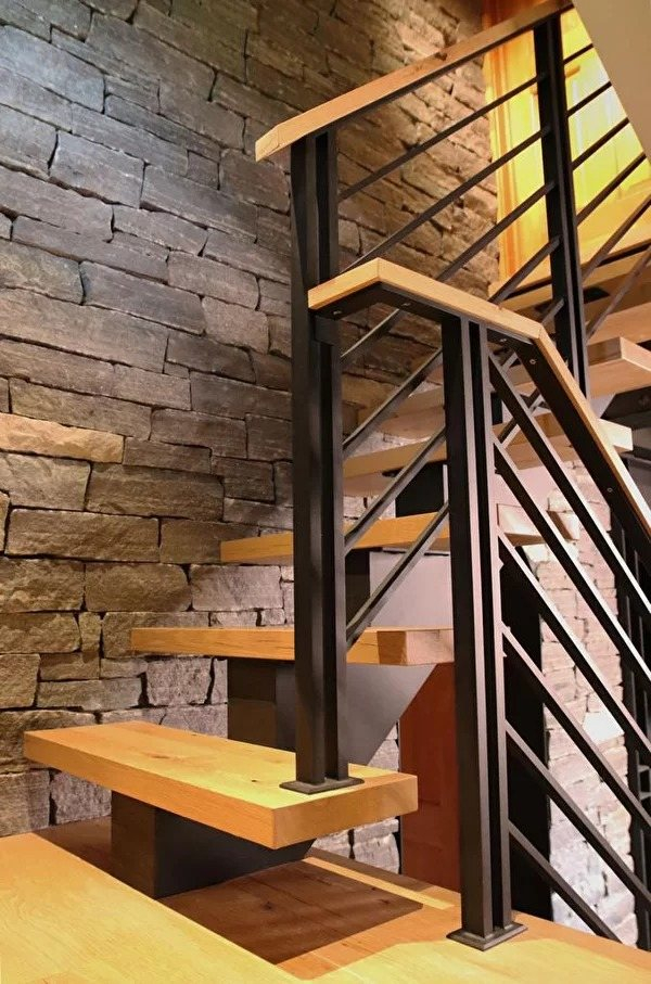 - К лестничным маршам металлические стойки крепятся просто и эффективно – используются незаметные шурупы или специальные болтовые соединения.
