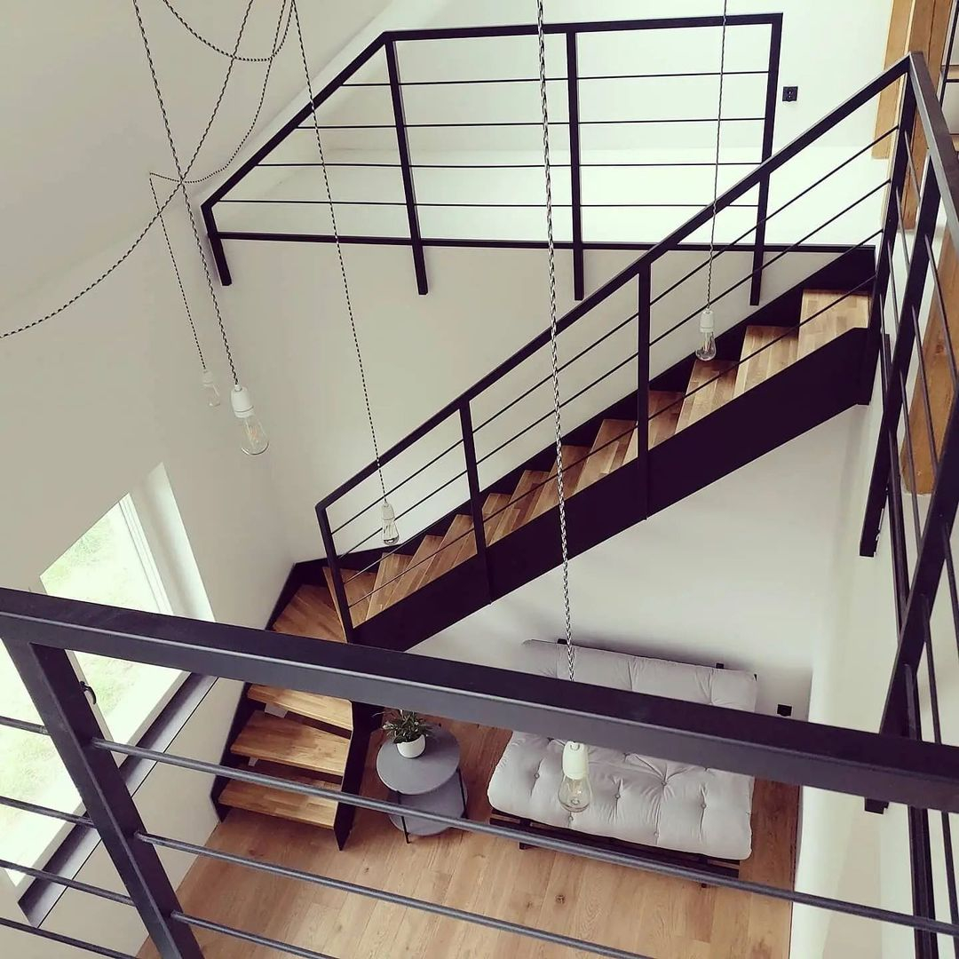 - Данный тип монтажа перил подразумевает крепление опорных стоек и балясин к торцу лестничного марша, таким образом, увеличивается полезная ширина пролета.