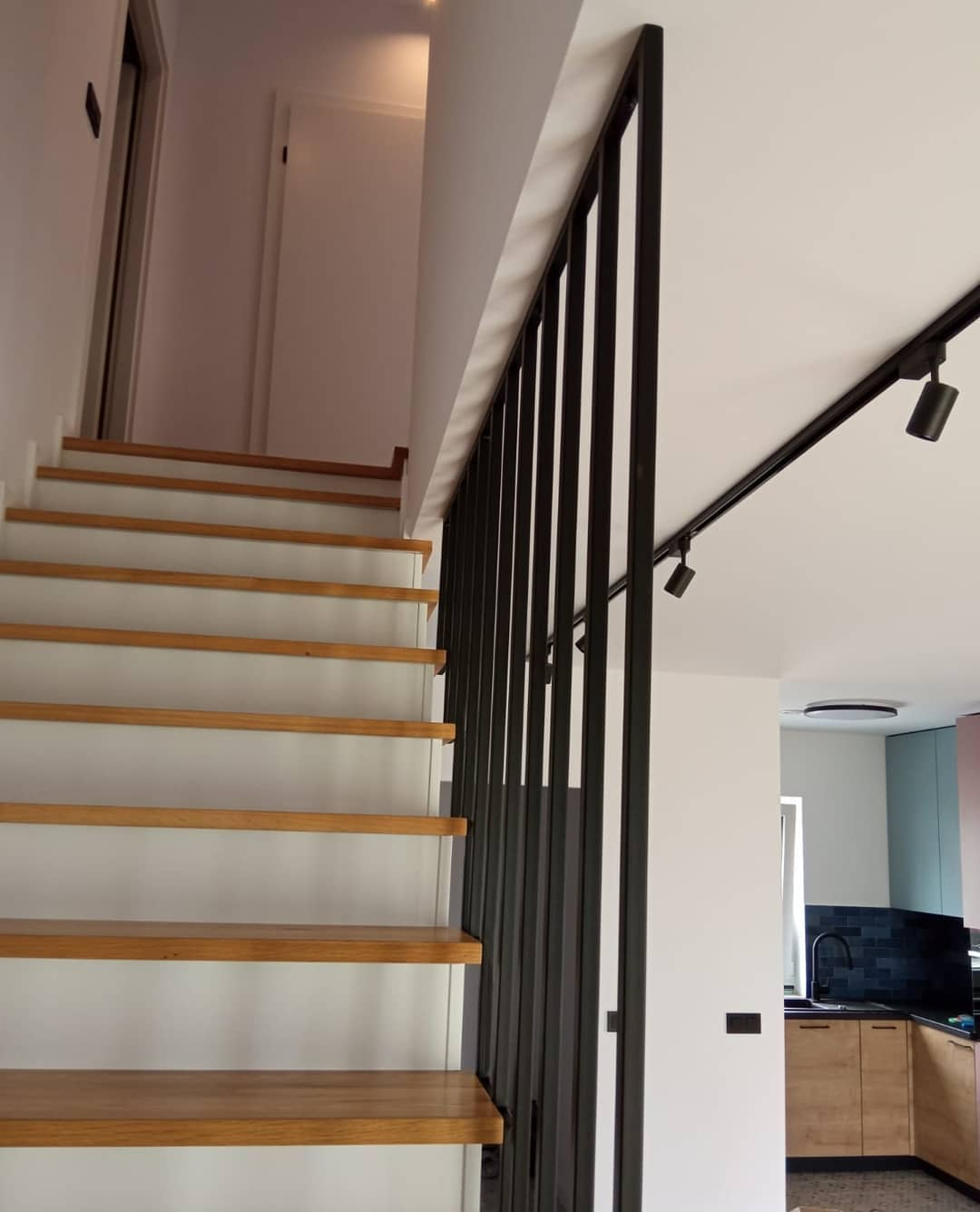 - Перила: из черного металла — 25 000 р. Порошковый окрас.
