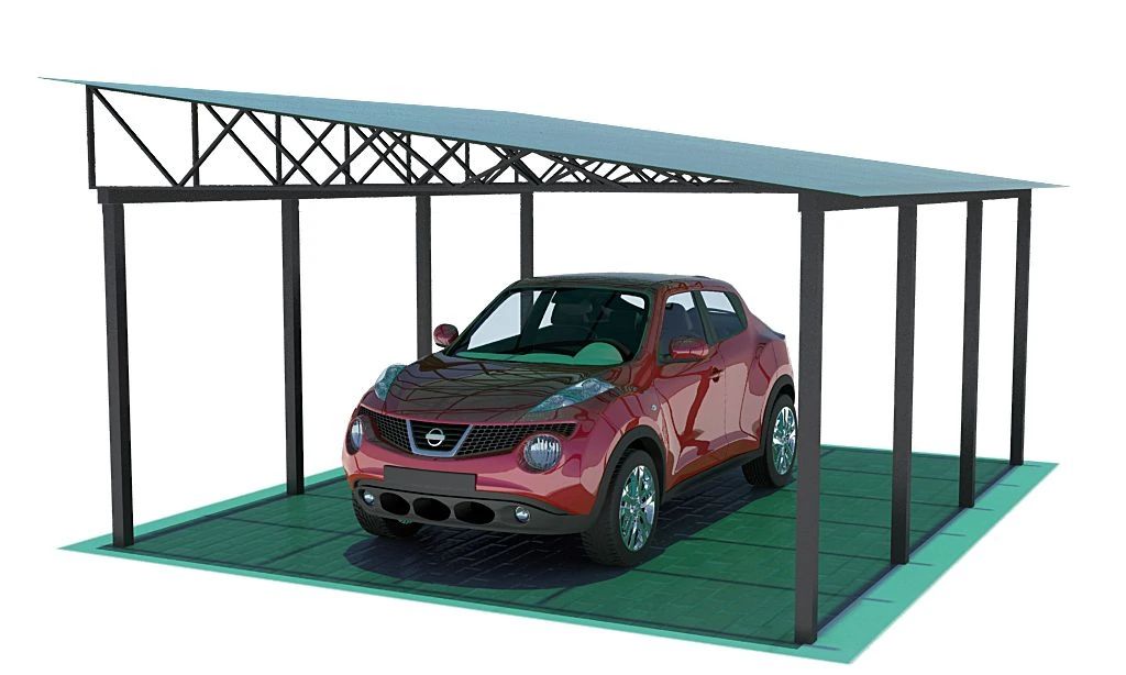 Размеры конструкции 3х6х3 м. Можно отдельно заказать перила. Используются профильные трубы, карбонат и кованые элементы.