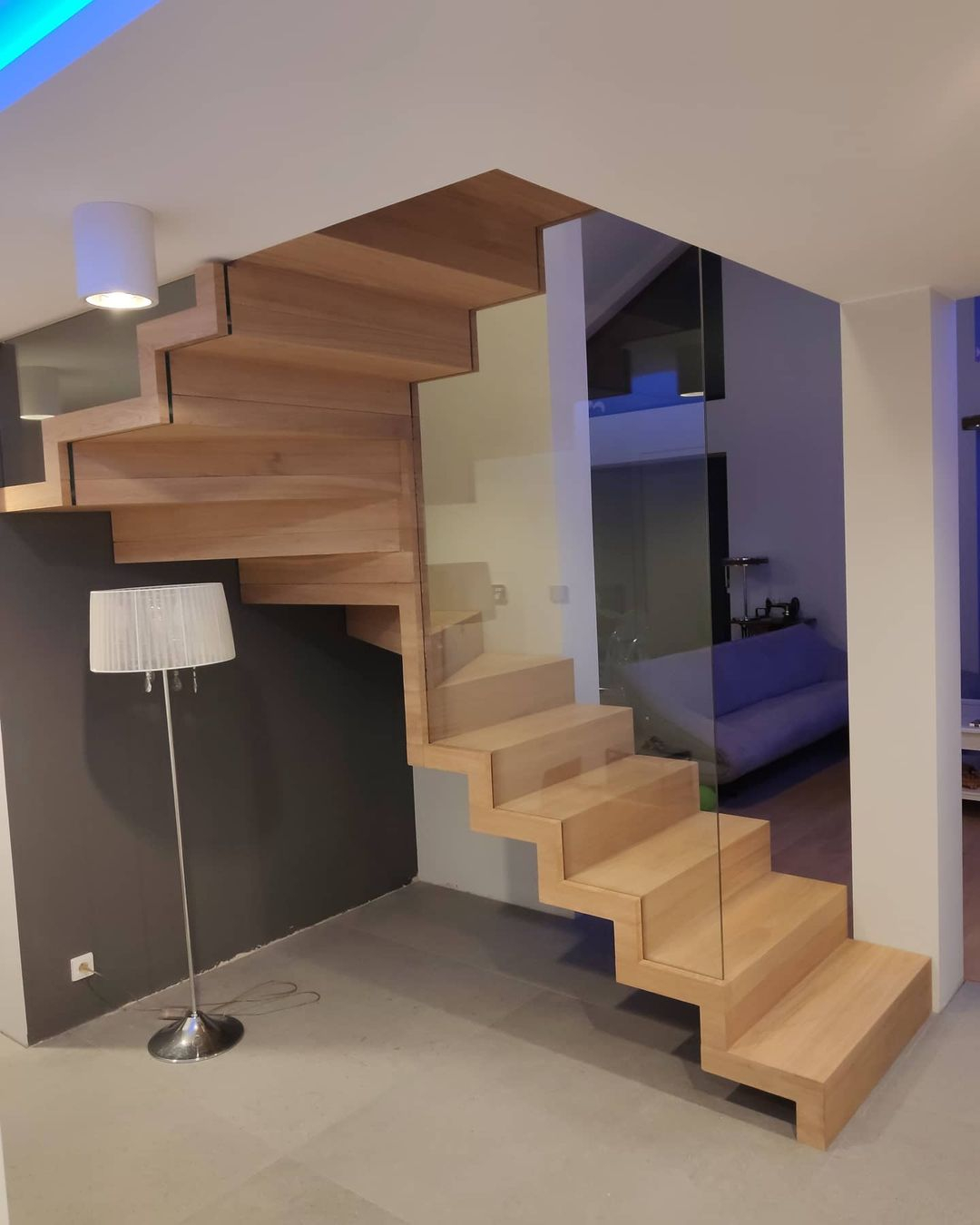 - Отсутствие стоек на лестнице не означает пренебрежение безопасностью – роль ограждения могут выполнять, например, стеклянные перегородки.