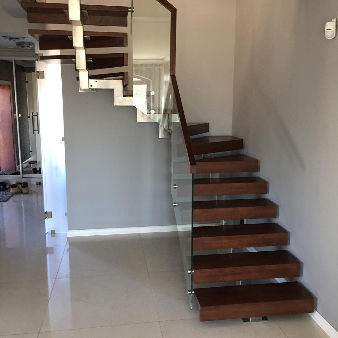 - Лестничные марши без перильных стоек, как правило, имеют весьма необычные ограждающие конструкции, благодаря чему помещение обретает стиль хай-тек.