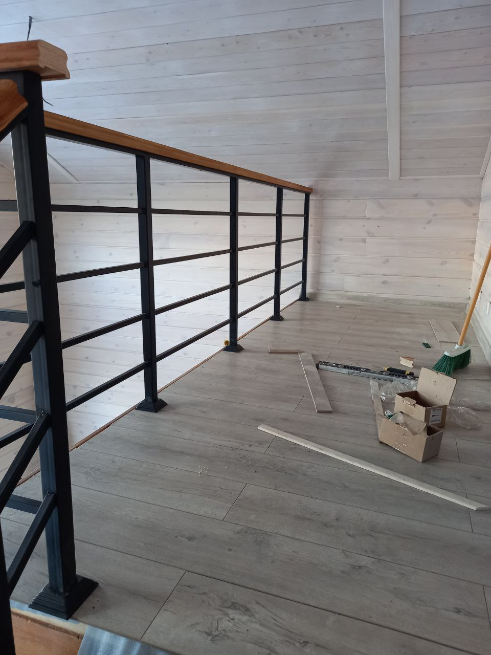 - Перила: из черного металла — 45 000 р. Порошковый окрас.