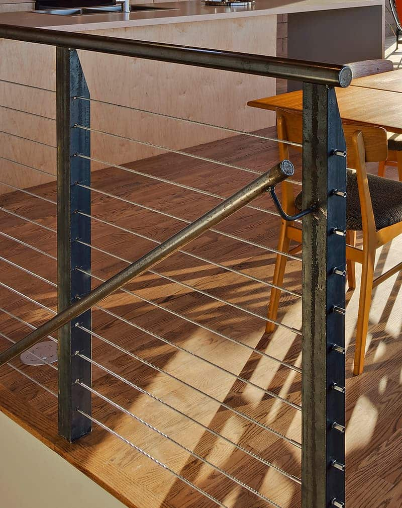 - Перила из тросов соответствуют всем нормативным требованиям, касающихся обеспечения безопасности: благодаря натяжному креплению тросы не получится раздвинуть.