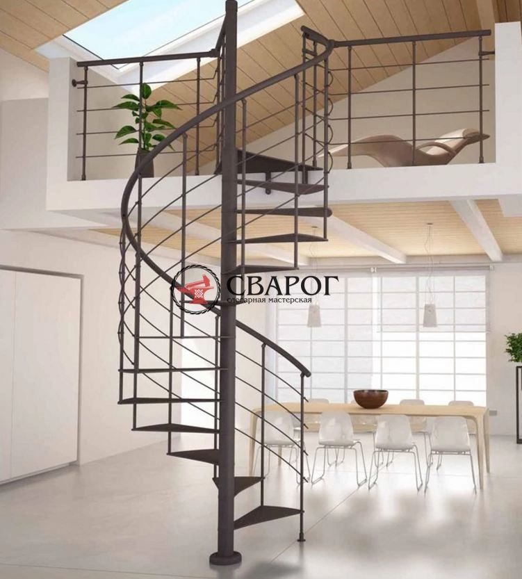 Такая лестница может стать архитектурным элементом как интерьера, так и экстерьера, также часто используется в служебных помещениях небольших площадей.