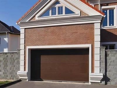 - Секционные — состоят многочисленных секций обеденных крепежным соединением и двигающиеся по направляющим устанавливаемым вертикально. По желанию снабжается автоматической, полуавтоматической и ручной системой открывания. Благодаря вертикальному подъему не обязательно расчищать снег и территорию перед воротами, что особенно актуально в зимний период. Механизм автоматического открывания позволит заезжать в гараж, используя пульт управления, не выходя из машины.