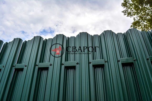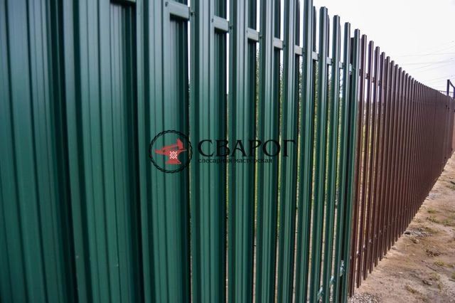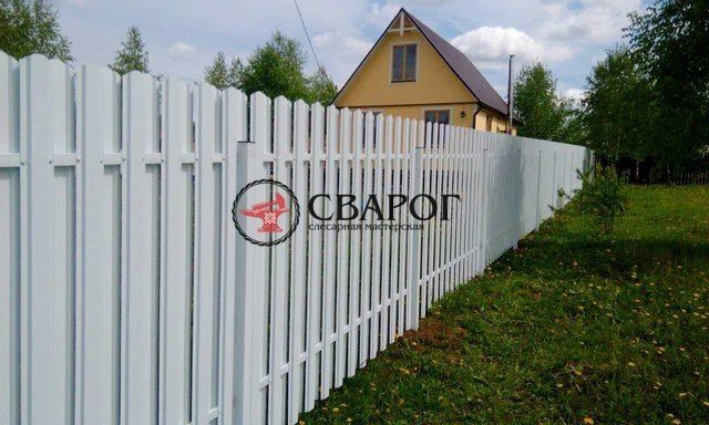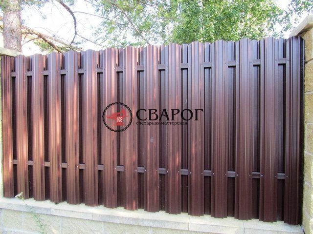 Особенностью данного забора является расположение штакетника с обоих сторон лаги в шахматном порядке.