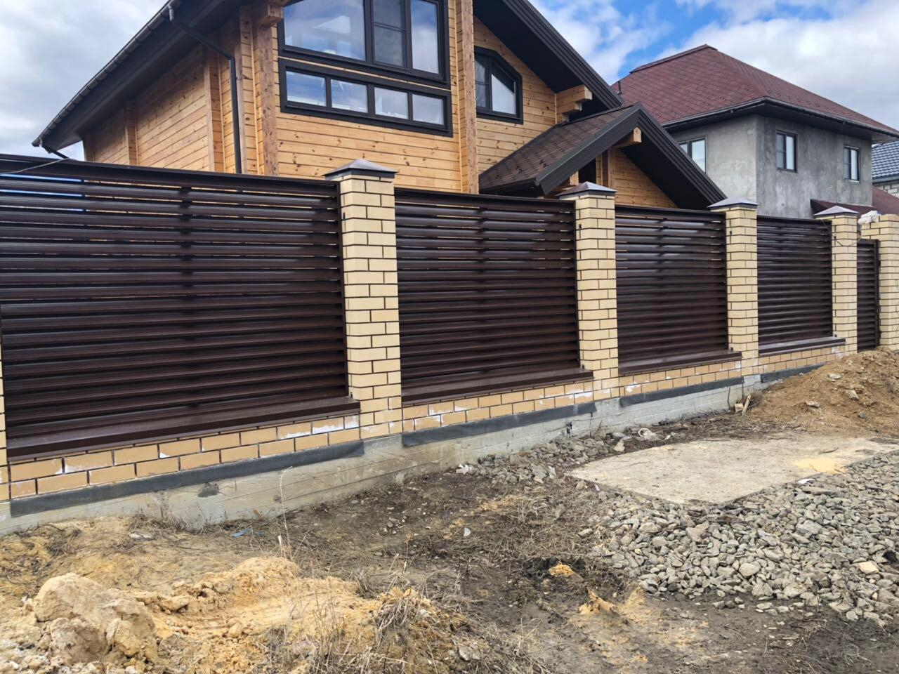 Особенностью данного забора является расположение штакетника с обоих сторон лаги в шахматном порядке.